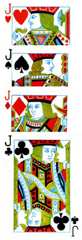 Begin your workout by shuffling the deck to ensure a random program. Then start drawing cards to figure out how your workout's going to unfold. If I draw the 3 of diamonds, I'll start with 3 minutes of jumping rope. If the next card is a 9 of hearts, I have to jog for 9 minutes.