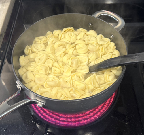 2. Cook the tortellini according to the package instructions. Then, set aside.