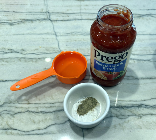 (We used a 24 oz. jar of Prego Roasted Garlic & Herb.)
