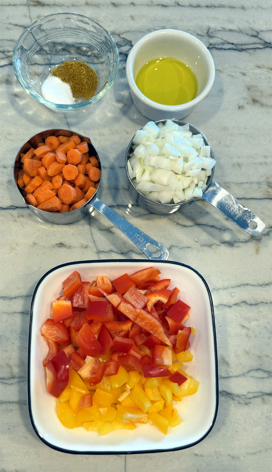2. Prepare Ingredients: Chop the vegetables and measure out the spices.