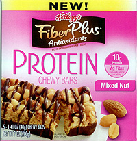 Fiber One Chewy Bars and South Beach Good to Go Bars have nine grams of fiber apiece while Kellogg's Fiber Plus Protein Chewy Bars have 10 grams of fiber per bar. Much of that fiber is from fart-inducing inulin.